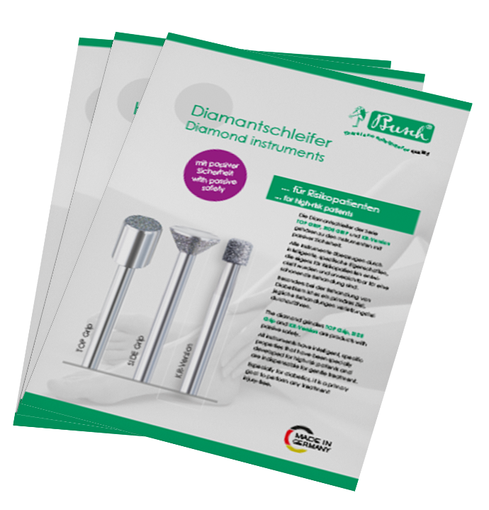 Au fil des ans, nous avons développé une large gamme d’instruments diamantés extrêmement innovants. En particulier, nos instruments de sécurité passive sont indispensables pour le traitement des pieds chez les diabétiques.
